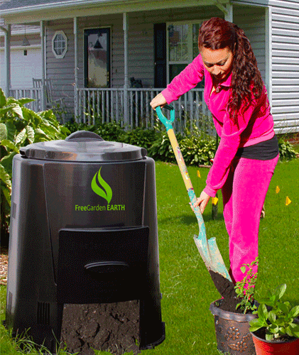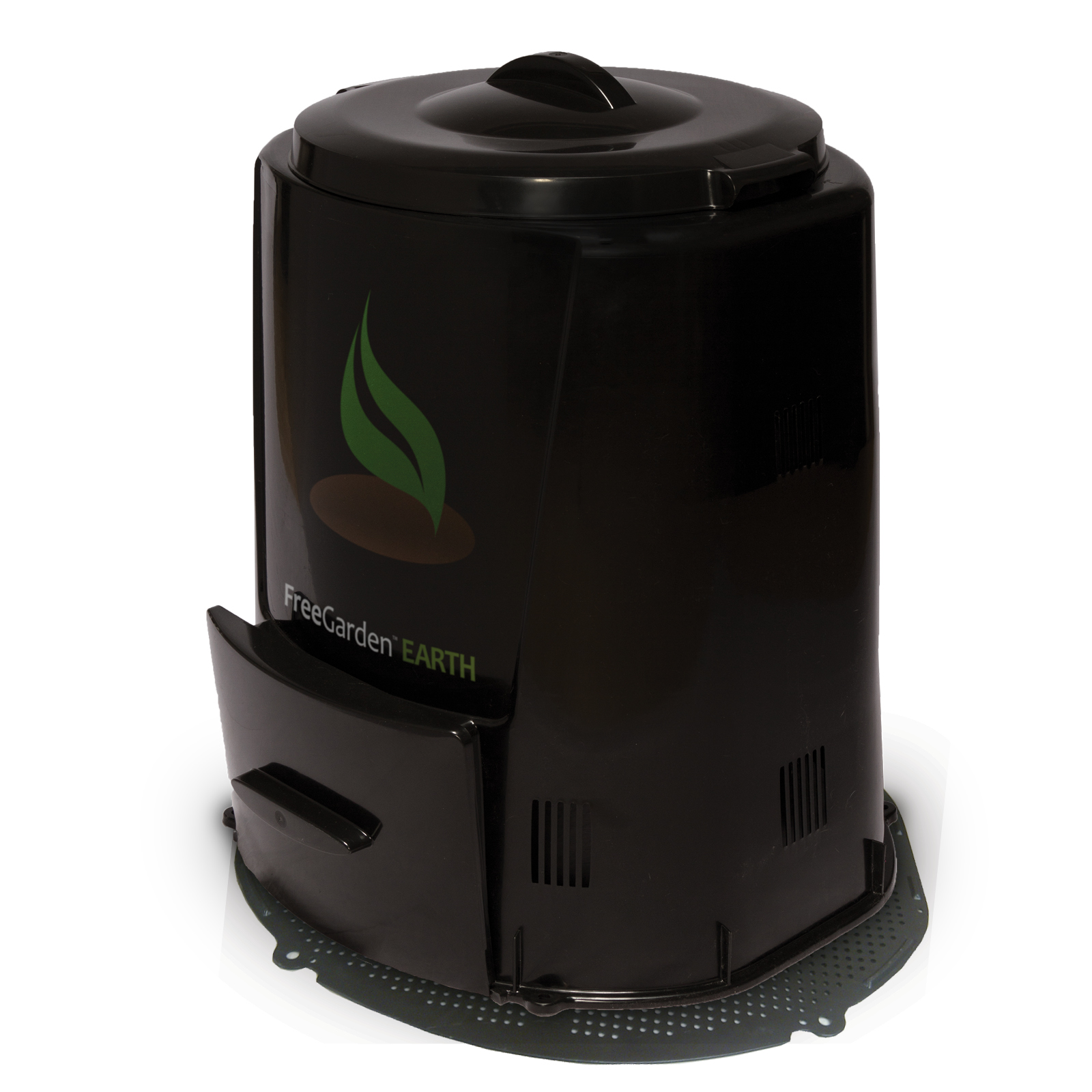 What is a compost bin?A compost bin is a container, specifically designed and engineered for the collection and processing of organic materials into nutrient rich compost or humus. The finished compost or humus harvested from a compost bin through the composting process of decomposition is an excellent soil amendment providing much needed enrichment for your soil. A compost bin has features that enhance the decomposition process and help make your commitment to composting more efficient. Why use a compost bin?A compost bin is a tangible, visible tool to assist residents in self management of their kitchen and yard residuals. Using a compost bin allows for greater control over the process of composting and decomposition. For some municipalities require a compost bin or compost system by regulation. A compost bin addresses neatness, attractiveness and convenience. The purchase and use of a compost bin is an investment in the behavior changes associated with waste reduction and sustainability. Why the FreeGarden™ EARTH compost bin?The FreeGarden™ EARTH Compost Bin has many features that make